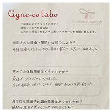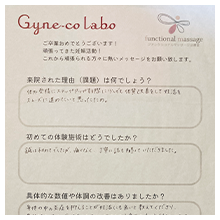 しかし、半年経ってもなかなか改善されず。なんとかしたいという思いから、ネットで見つけたジネコラボに藁をもすがる思いと半信半疑な思いを持って来院しました。